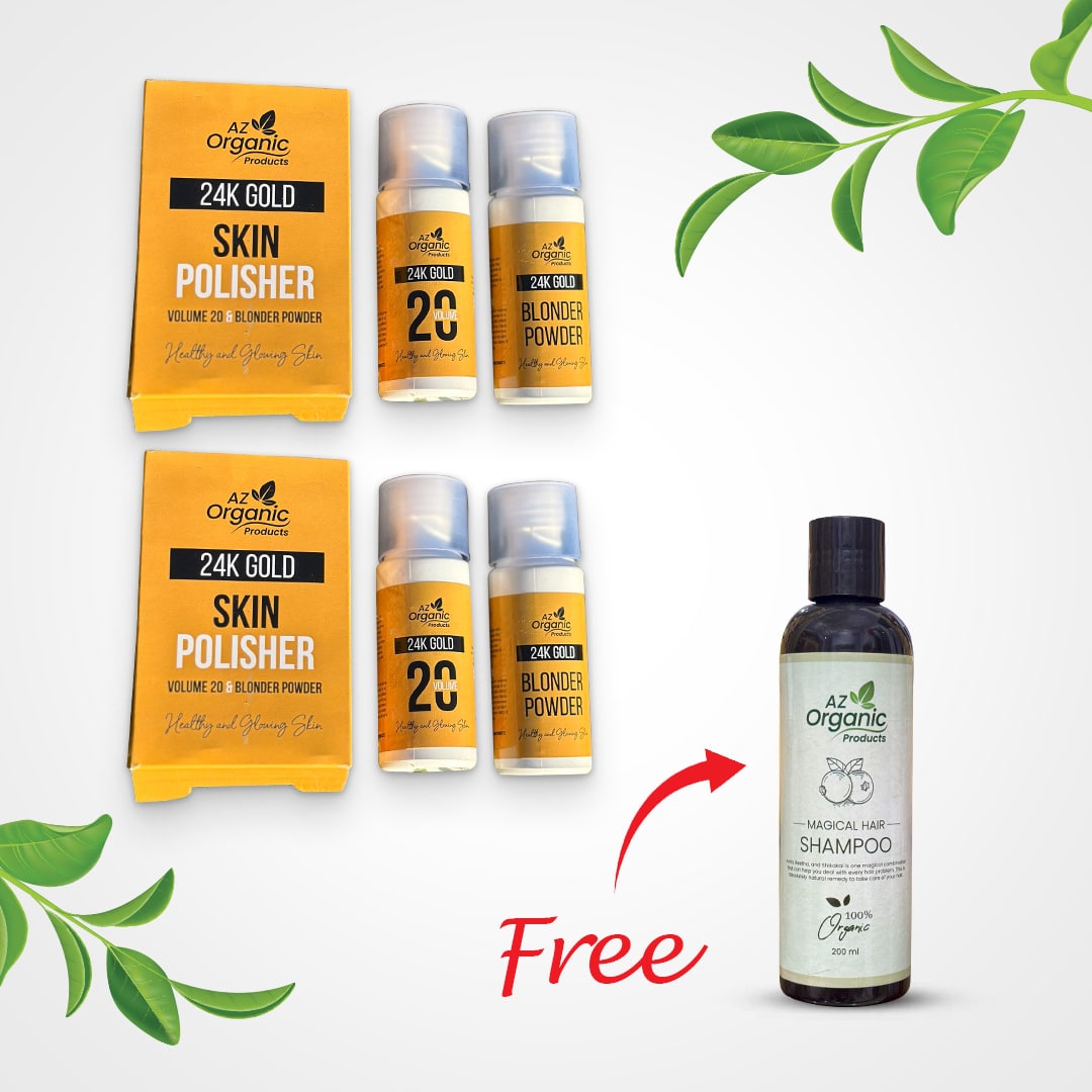 Two package of skin polisher and one free organic shampoo bottle beauty bundle deal.